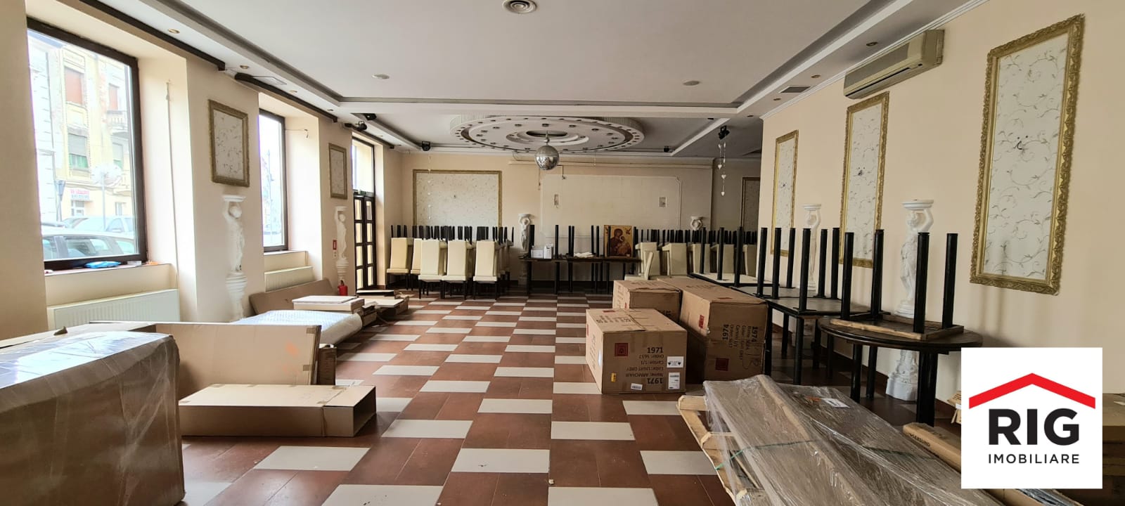 Imobilul este amenajat cu: gresie, faianta, tamplarie PVC, aer conditionat, dispune de curte interioara/terasa. Capacitatea imobilului este de 150 persoane.