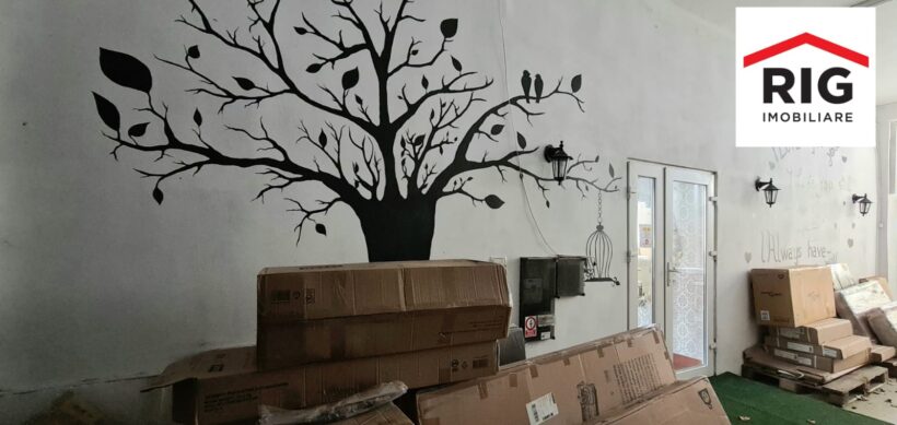 Este compus dintr-un spatiu open space, bucatarie dotata si functionala, grupuri sanitare si mai multe incaperi de depozitare suprafata construita 400 mp, suprafata teren 900 mp.