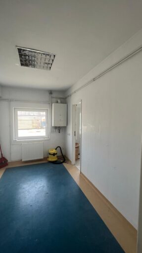 RIG Imobiliare va propune spre inchiriere o hala industriala cu showroom in zona Aradul Nou. La intrare in hala exista un spatiu compus dintr-un showroom , 2 birouri, o camera, hol, 2 bai, chicineta, suprafata de 200 mp. In a doua parte se afla hala de productie de aproximativ 500 mp. Hala este izolata, dispune de incalzire pe gaz cu calorifere, acoperis nou, geamuri si usi termopan, sistem de alarma.