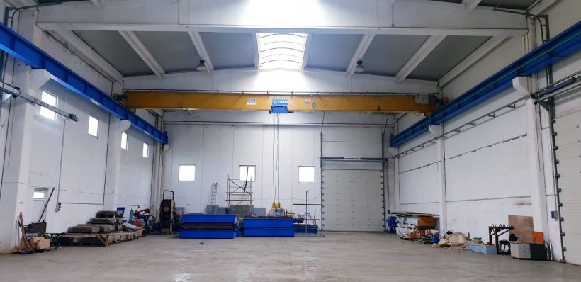 Imobilul este o constructie din beton, cu o inaltime de 10 ml, suprafata construita de 1.050 mp, acces pe 4 porti sectionale, dispune de birouri si grupuri sanitare pentru anagajati. Spatiul are un flux tehnologic excelent datorita si podului rulant.