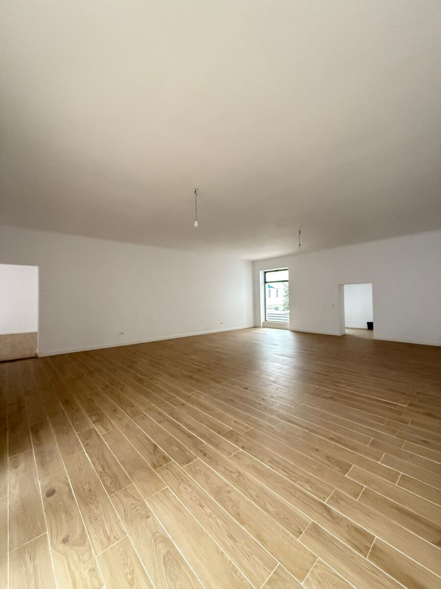 Spațiul este recent renovat, cu finisaje moderne și materiale de calitate: